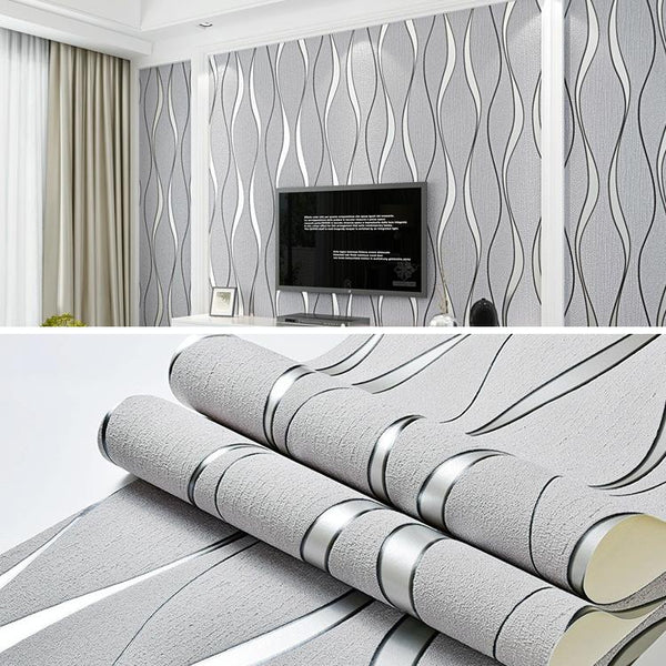 Simple 3D Water Ripple Non-woven Wallpaper Home Decoration Wall Sticker(Light Grey)
