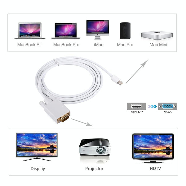 1.8m Mini DisplayPort Male to VGA Male Adapter Cable