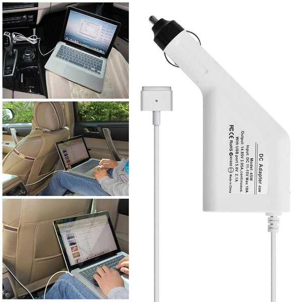 45W 14.85V 3.05A 5 Pin T Style MagSafe 2 Car Charger with 1 USB Port for Apple Macbook A1466 / A1436 / A1465 / A1435 / MD224 / MD231 / MD761 / MD711, Length: 1.7m(White)