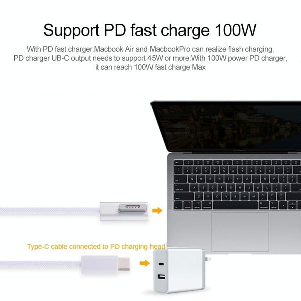 45W / 60W / 65W / 85W 5 Pin MagSafe 2 (T-Shaped) to USB-C / Type-C PD Charging Cable(White)