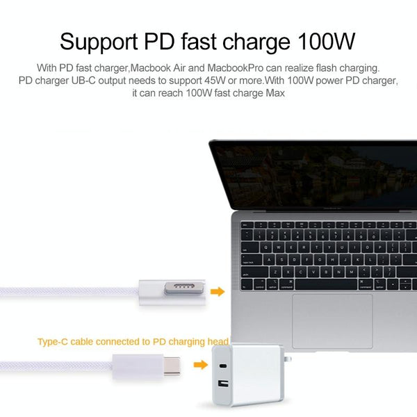 45W / 65W / 85W / 100W 5 Pin MagSafe 2 (T-Shaped) to USB-C / Type-C PD Charging Cable