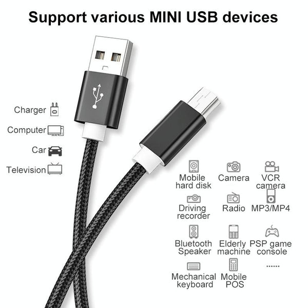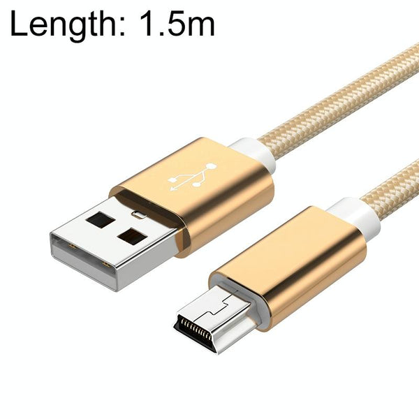 5 PCS Mini USB to USB A Woven Data / Charge Cable for MP3, Camera, Car DVR, Length:1.5m(Gold)