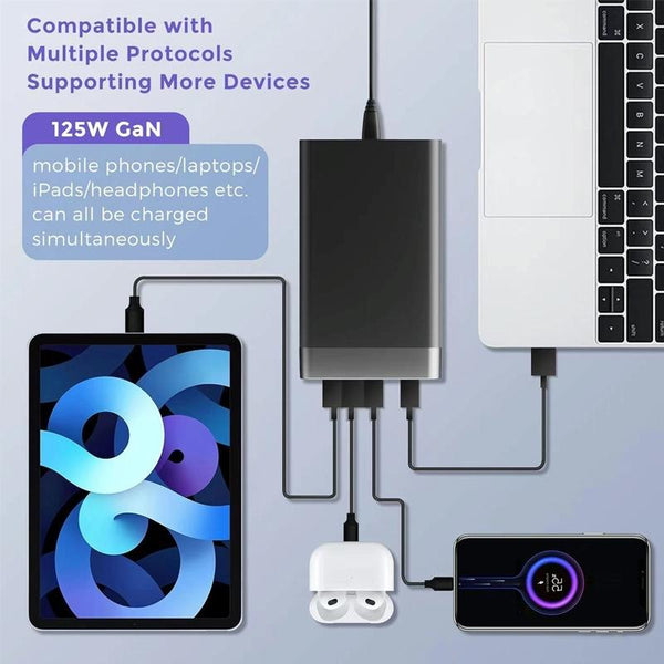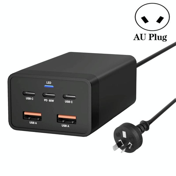 GAN 125W PD65W Dual Type-C + QC3.0 USB Multi Compatible Notebook Adapter AU Plug