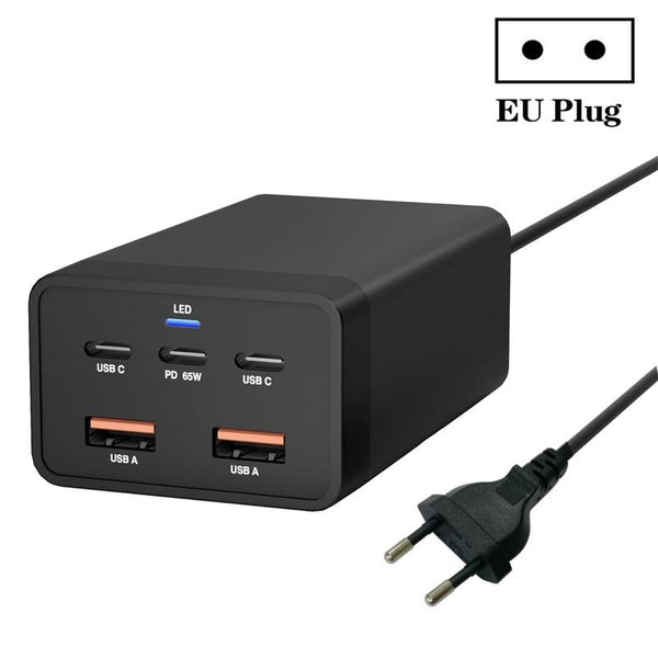 GAN 125W PD65W Dual Type-C + QC3.0 USB Multi Compatible Notebook Adapter EU Plug