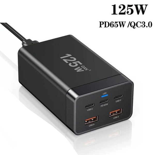 GAN 125W PD65W Dual Type-C + QC3.0 USB Multi Compatible Notebook Adapter US Plug