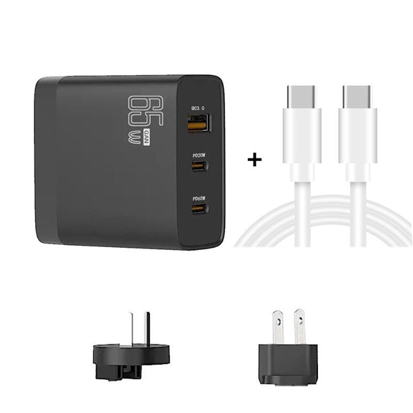 GAN 65W PD45W Dual Type-C / QC3.0 USBMulti Compatible Charger + 2m USB-C to USB-C Data Cable AU + US Plug Black