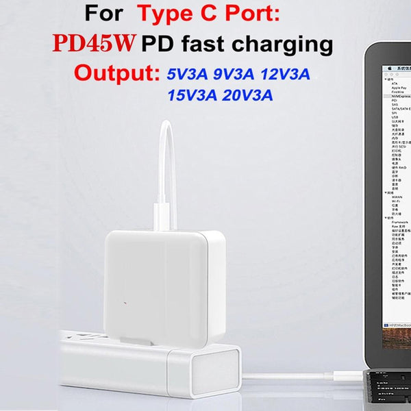 8. Support for laptops: Type-C1 supports a maximum output of 45W, supports Apple MacBook series fast charging with USB-C interface, and supports smart charging for tablets and laptops such as Huawei, Samsung, and Xiaomi.