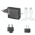 GAN 65W PD45W Dual Type-C / QC3.0 USBMulti Compatible Charger + 2m USB-C to USB-C Data Cable EU + US Plug Black