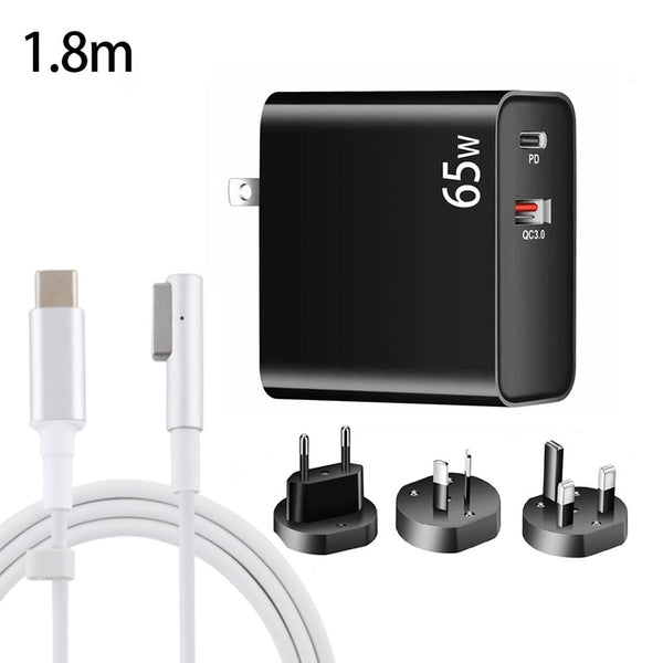 PD-65W USB-C / Type-C + QC3. 0 USB Laptop Charging Adapter + 1.8m USB-C / Type-C to MagSafe 1 / L Head Data Cable,AU Plug / EU Plug / US Plug / UK Plug(Black)
