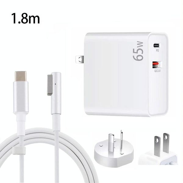 PD-65W USB-C / Type-C + QC3. 0 USB Laptop Charging Adapter + 1.8m USB-C / Type-C to MagSafe 1 / L Head Data Cable, AU Plug / US Plug(White)