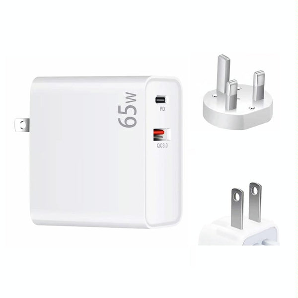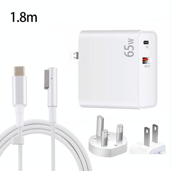 PD-65W USB-C / Type-C + QC3. 0 USB Laptop Charging Adapter + 1.8m USB-C / Type-C to MagSafe 1 / L Head Data Cable, UK Plug / US Plug(White)