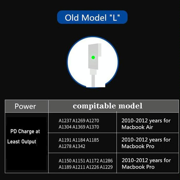 8. USB-C to MagSafe 1/L head data cable: cable length 1.8 meters; magnetic interface, 5 Pin magnetic charging; suitable for smart charging of MacBook series from 2010 to June 2012