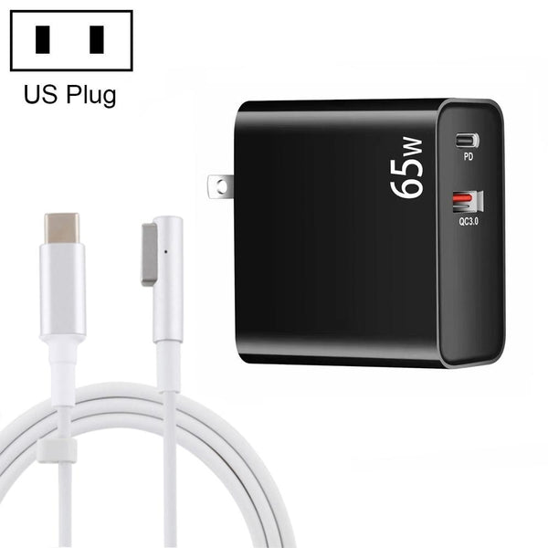 PD-65W USB-C / Type-C + QC3. 0 USB Laptop Charging Adapter + 1.8m USB-C / Type-C to MagSafe 1 / L Head Data Cable, US Plug(Black)