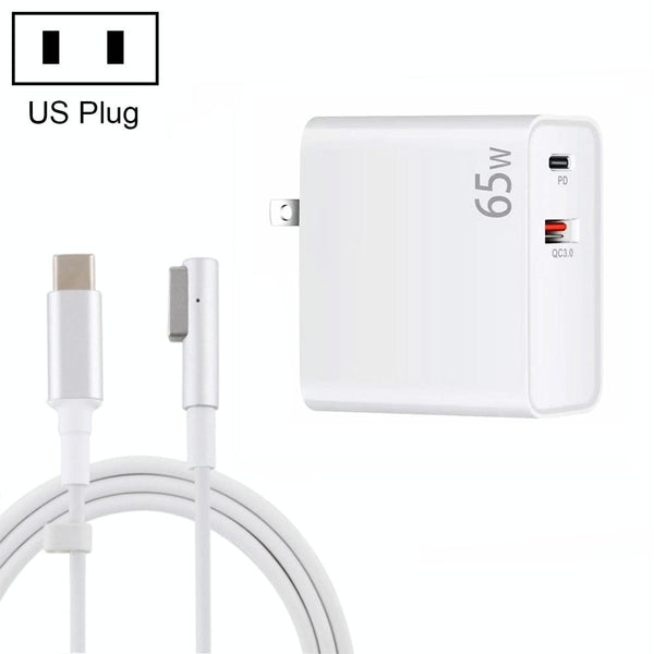 PD-65W USB-C / Type-C + QC3. 0 USB Laptop Charging Adapter + 1.8m USB-C / Type-C to MagSafe 1 / L Head Data Cable, US Plug(White)