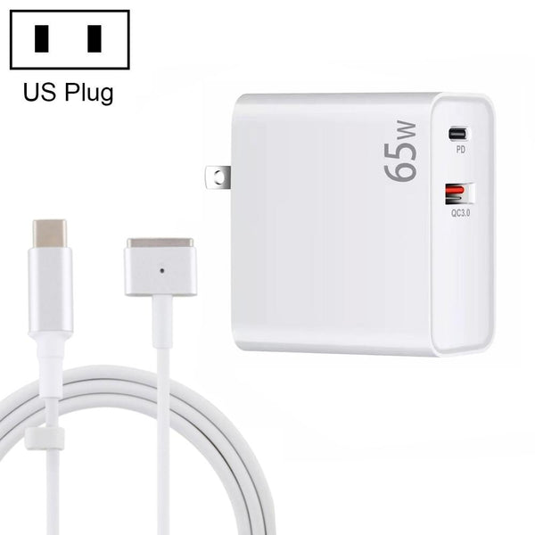 PD-65W USB-C / Type-C + QC3. 0 USB Laptop Charging Adapter + 1.8m USB-C / Type-C to MagSafe 2 / T Head Data Cable, US Plug(White)