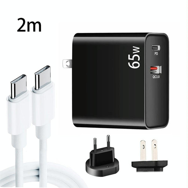 PD-65W USB-C / Type-C + QC3. 0 USB Laptop Charging Adapter + 2m USB-C / Type-C to USB-C / Type-C Data Cable Set, EU Plug / US Plug(Black)