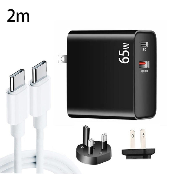 PD-65W USB-C / Type-C + QC3. 0 USB Laptop Charging Adapter + 2m USB-C / Type-C to USB-C / Type-C Data Cable Set, UK Plug / US Plug(Black)