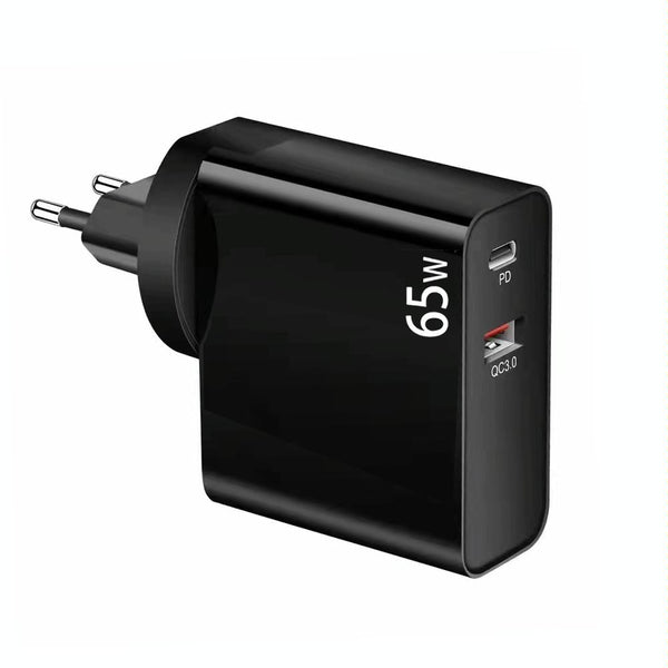 PD-65W USB-C / Type-C + QC3. 0 USB Laptop Charging Adapter, EU Plug / US Plug(Black)