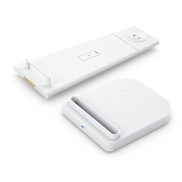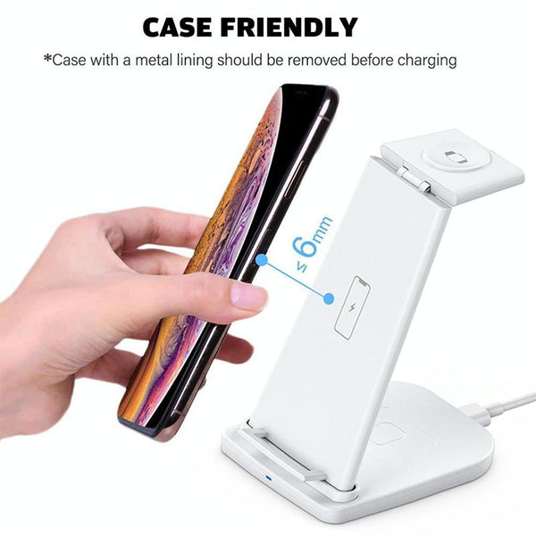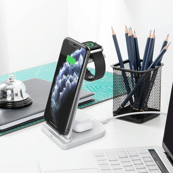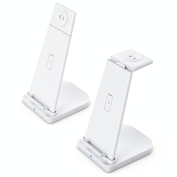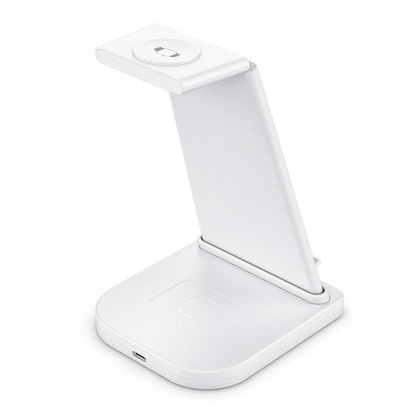 10W 3 in 1 QC 3.0 Vertical Multi-function Wireless Charger with Stand Function, Suitable for Mobile Phones / Apple Watch / AirPods (White)
