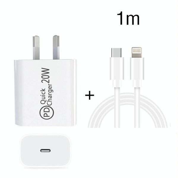 1m AU-20W PD USB-C / Type-C Travel Charger with USB-C to 8 Pin Data Cable, AU Plug