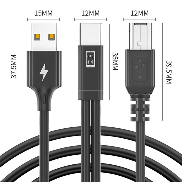 1m USB-C / Type-C to MIDI + USB Sound Card Audio Connection Sync Charging Cable(Black)