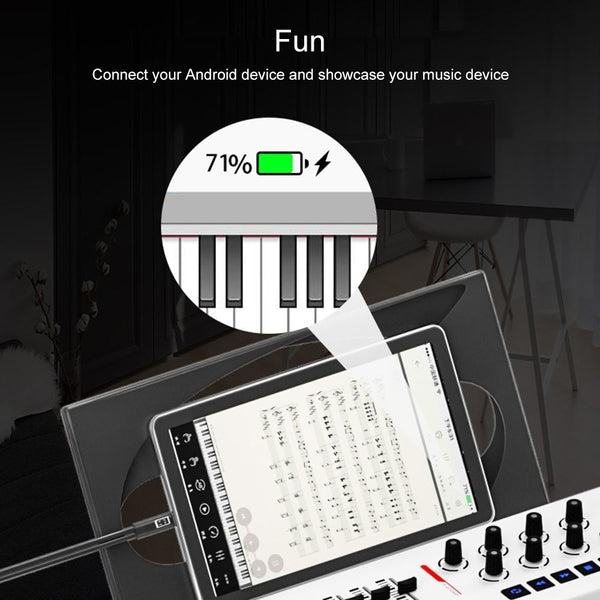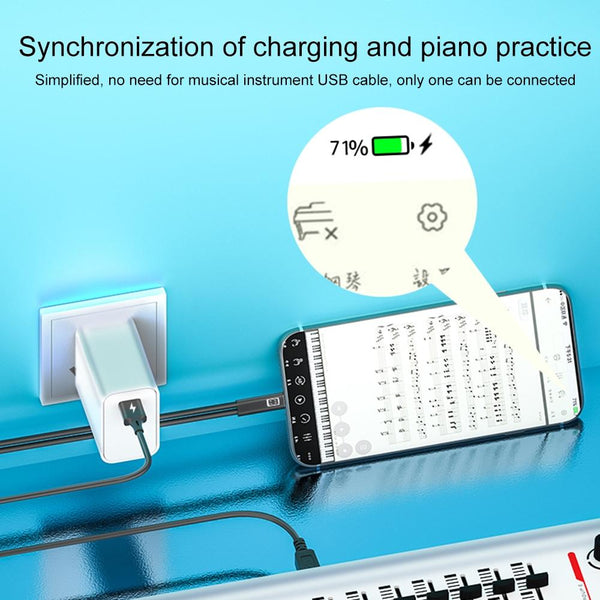 3. With split cable with USB plug, charging and piano practice can can be synchronized