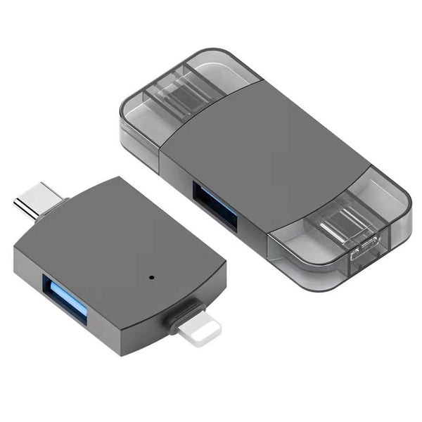 2 in 1 USB 2.0 + USB 3.0 Female to 8 Pin + USB-C / Type-C Male OTG Adapter