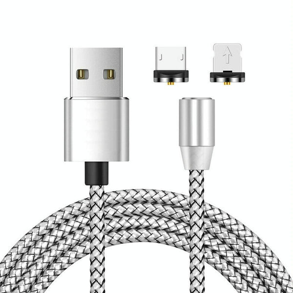 2 in 1 USB to 8 Pin + Micro USB Magnetic Metal Interface Nylon Braided Charging Cable, Length: 1m(Silvery)
