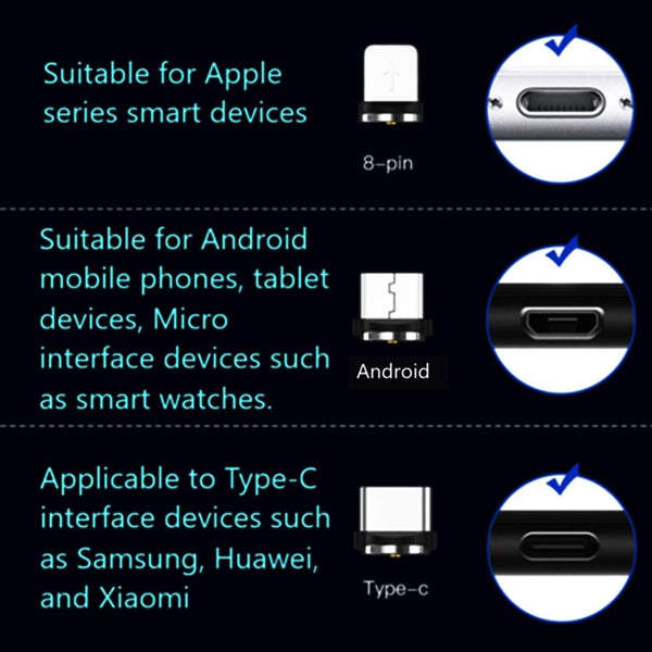 4. Equipped with 2 magnetic suction heads: iPhone 8 pin / micro USB.
