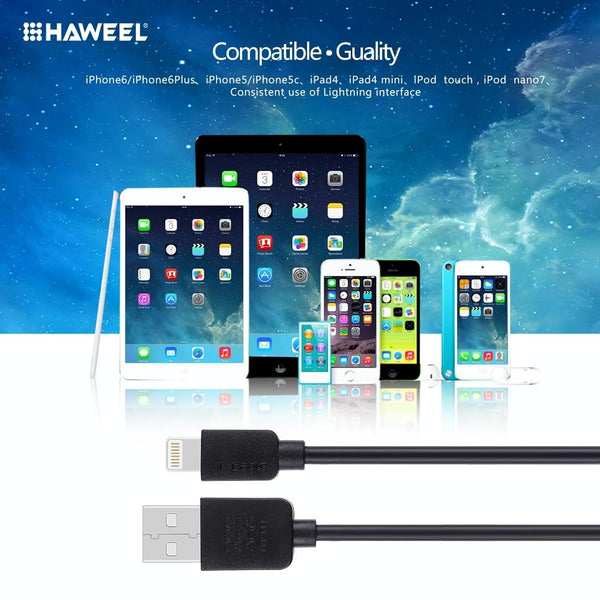2 PCS HAWEEL 1m High Speed 8 pin to USB Sync and Charging Cable Kit for iPhone, iPad(Black)