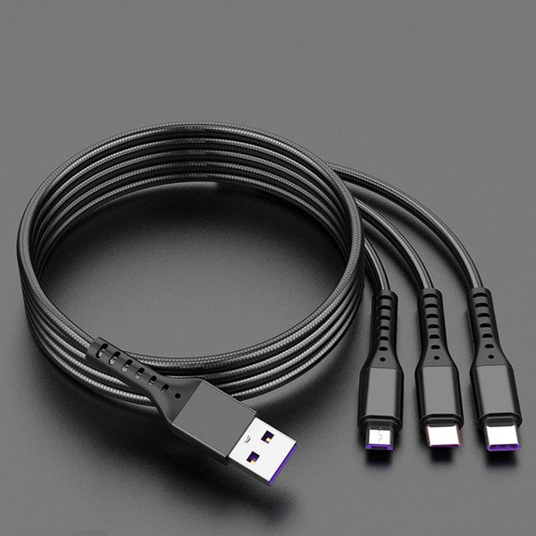 2 PCS ZZ034 USB To 8 Pin + USB-C / Type-C + Micro USB 3 In 1 Fast Charging Cable, Style: 5A Super Fast-Black