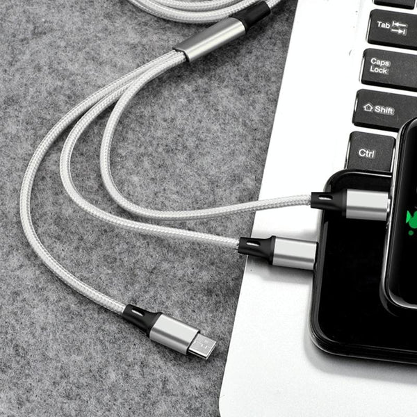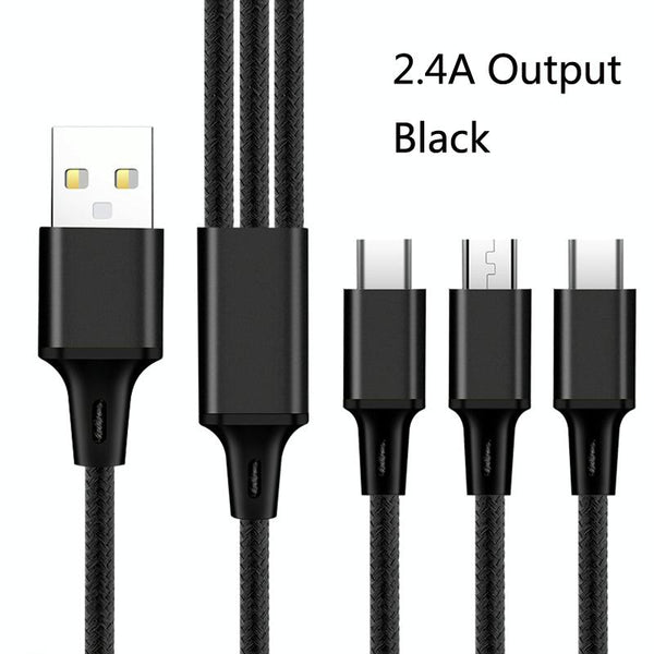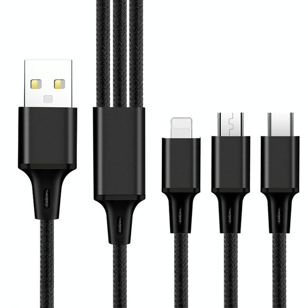 2 PCS ZZ034 USB To 8 Pin + USB-C / Type-C + Micro USB 3 In 1 Fast Charging Cable, Style: Mini-Black