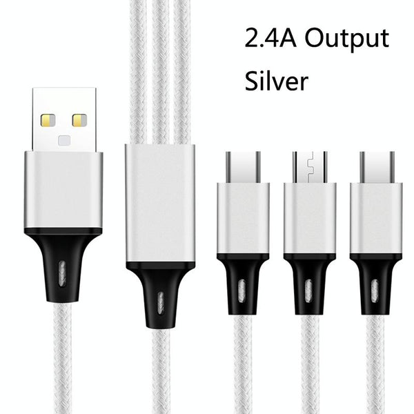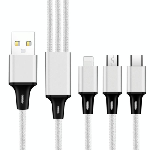 2 PCS ZZ034 USB To 8 Pin + USB-C / Type-C + Micro USB 3 In 1 Fast Charging Cable, Style: Mini-Silver