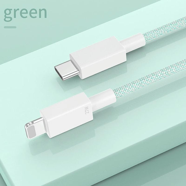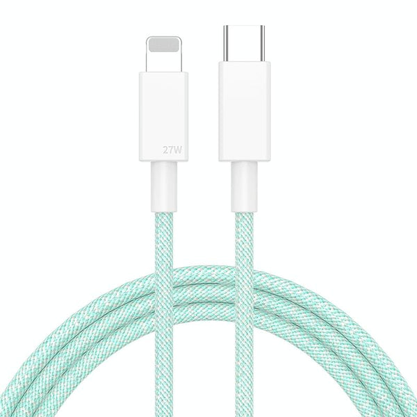 27W PD USB-C / Type-C to 8 Pin Fast Charging Braided Data Cable, Cable Length: 1m(Green)