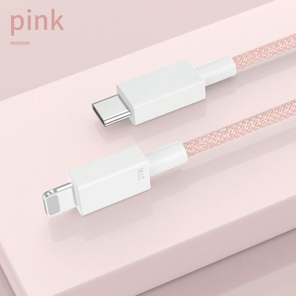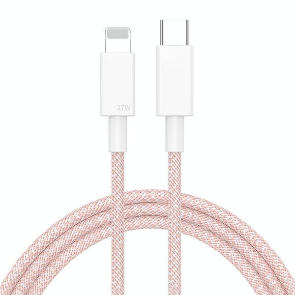 27W PD USB-C / Type-C to 8 Pin Fast Charging Braided Data Cable, Cable Length: 1m(Pink)