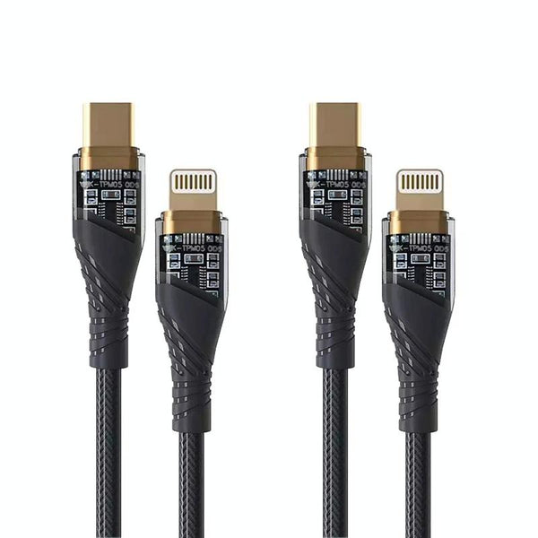2pcs PD30W USB-C / Type-C to 8 Pin Transparent 3A Fast Charging Data Cable, Length: 1m(Black)