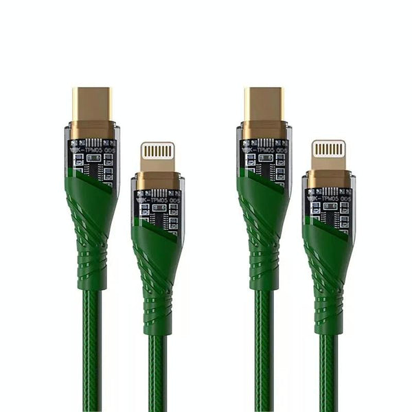 2pcs PD30W USB-C / Type-C to 8 Pin Transparent 3A Fast Charging Data Cable, Length: 1m(Green)