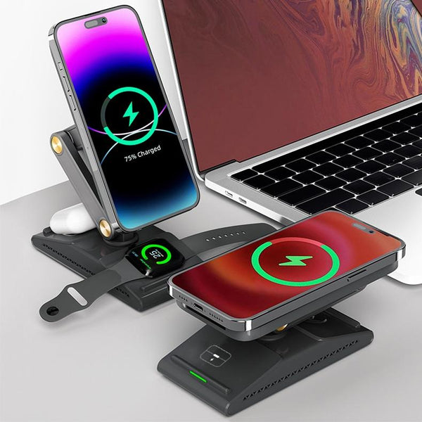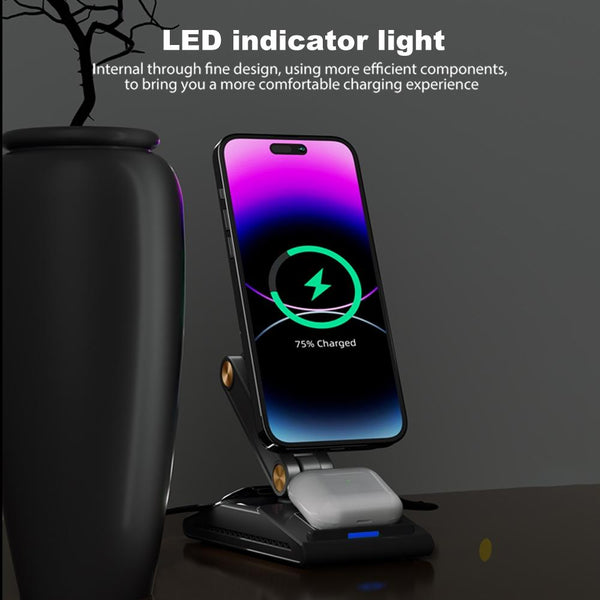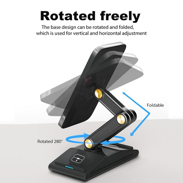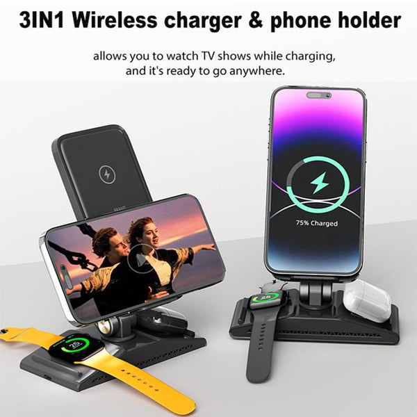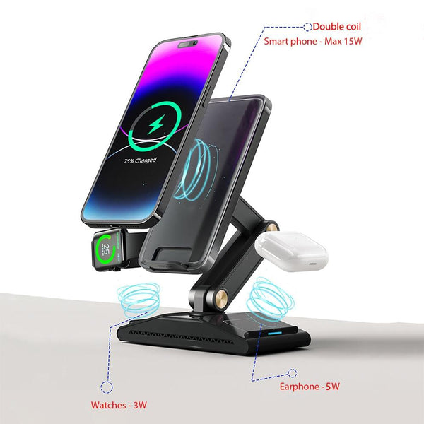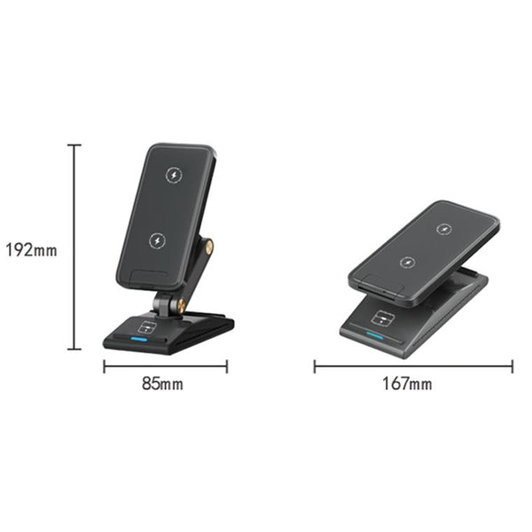 3-In-1 15W Portable Folding Desktop Stand Mobile Phone Wireless Charger(Black)