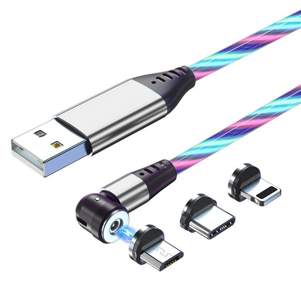 3 in 1 2.4A USB to 8 Pin + Micro USB + USB-C / Type-C 540 Degree Bendable Streamer Magnetic Data Cable, Cable Length: 1m (Colour)