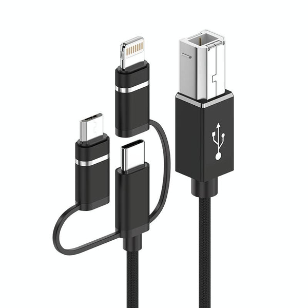 3 in 1 8 Pin, Type-C, Micro USB to USB-B MIDI Instruments Printer Cable, Length: 1m, Length:1m(Black)