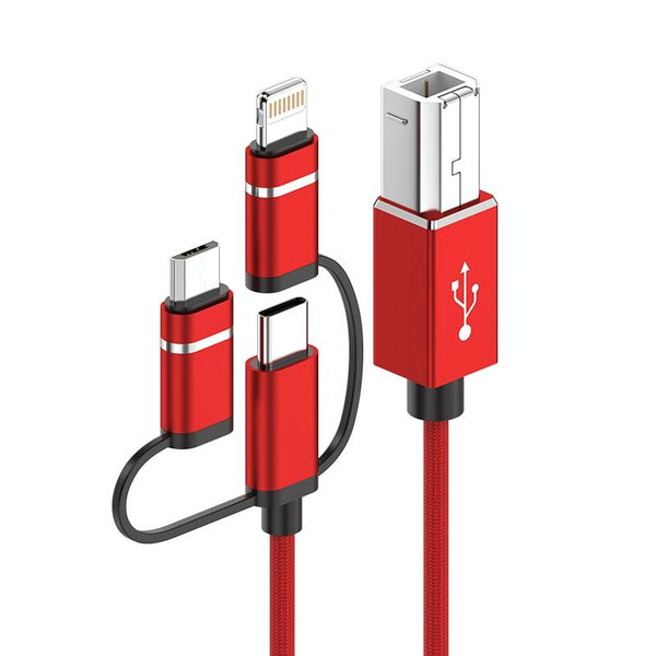 3 in 1 8 Pin, Type-C, Micro USB to USB-B MIDI Instruments Printer Cable, Length: 1m, Length:1m(Red)