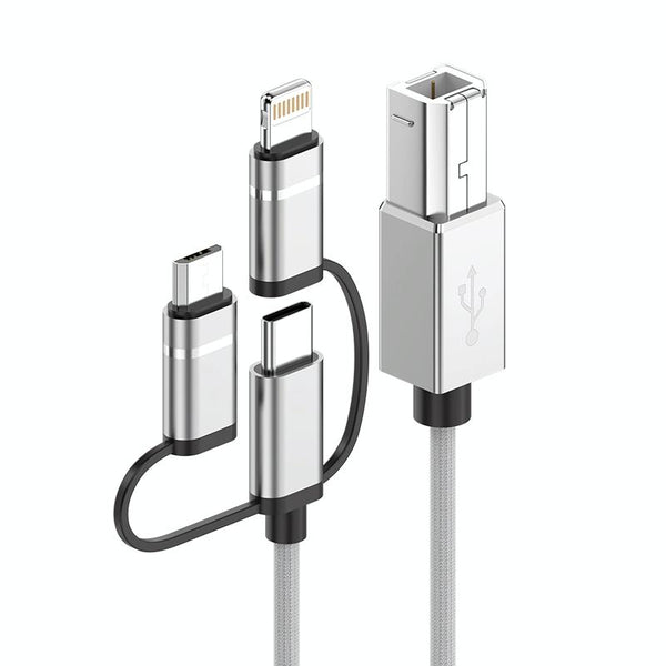 3 in 1 8 Pin, Type-C, Micro USB to USB-B MIDI Instruments Printer Cable, Length: 1m, Length:1m(Silver)