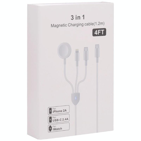 3 in 1 USB-C / Type-C to 8 Pin + USB-C / Type-C + Magnetic Watch Wireless Charger Data Cable, Cable Length: 1.2m