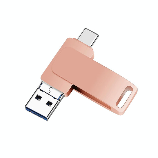 32GB USB 3.0 + 8 Pin + USB-C / Type-C 3 in 1 Phone Computer Metal Rotatable U-Disk(Pink)