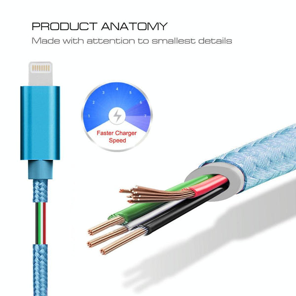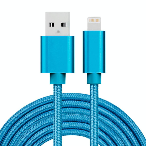 3m 3A Woven Style Metal Head 8 Pin to USB Data / Charger Cable(Blue)