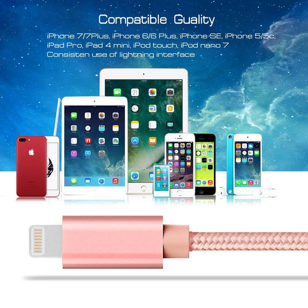 3m 3A Woven Style Metal Head 8 Pin to USB Data / Charger Cable(Rose Gold)