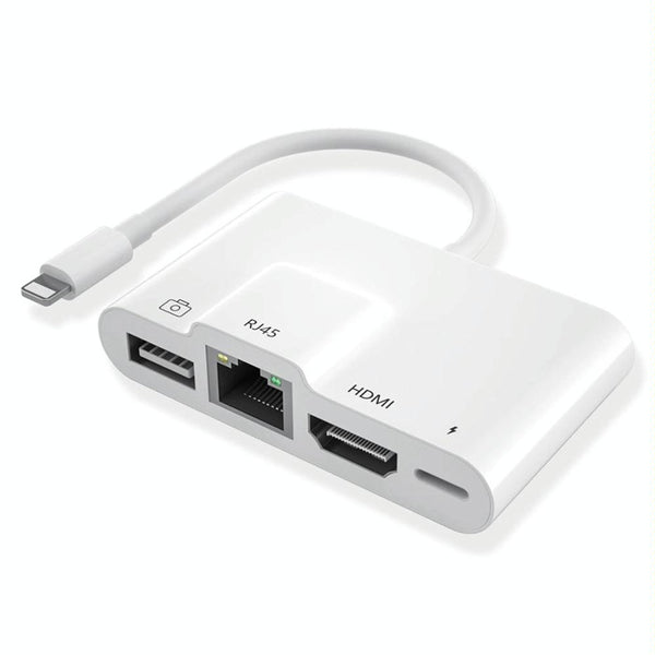 4 in 1 8 Pin Male to 8 Pin Power + RJ45 Ethernet + HDMI + USB Camera Female OTG Digital AV Adapter