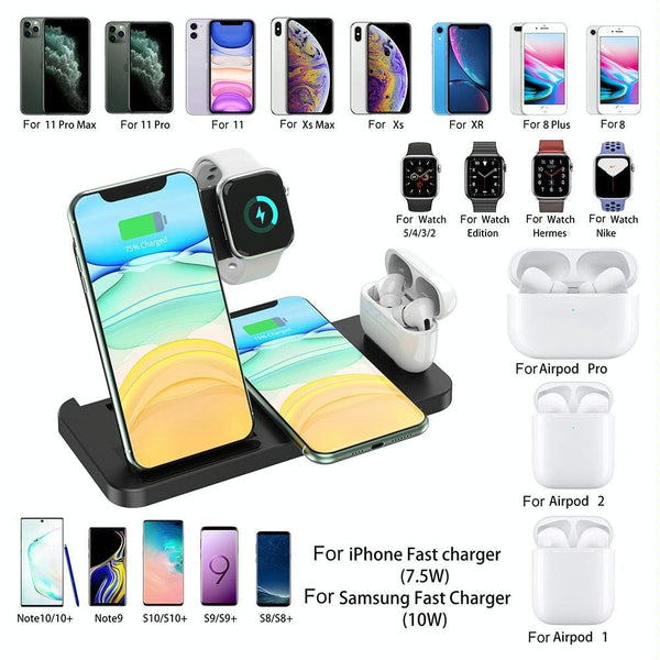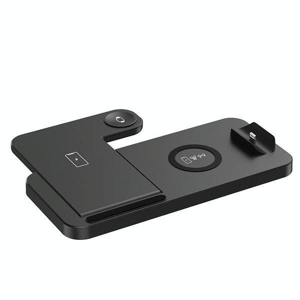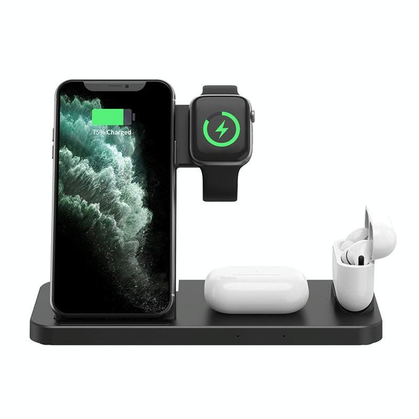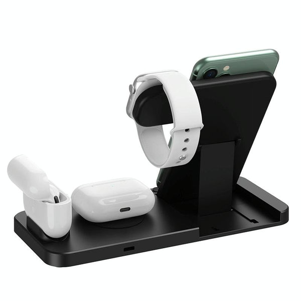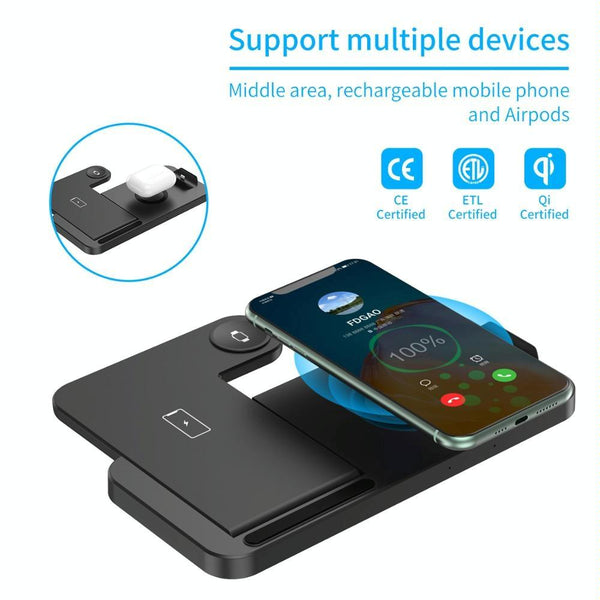 4-in-1 Foldable Desktop Mobile Phone Watch Earphones Wireless Charger(Black)