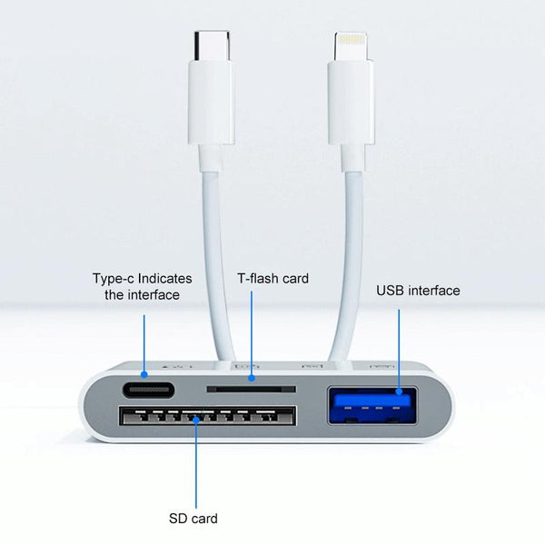 4 in 2 USB-C / Type-C + 8 Pin Interface Multi-function Card Reader(White)
