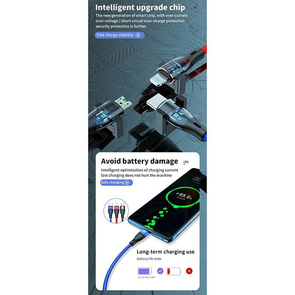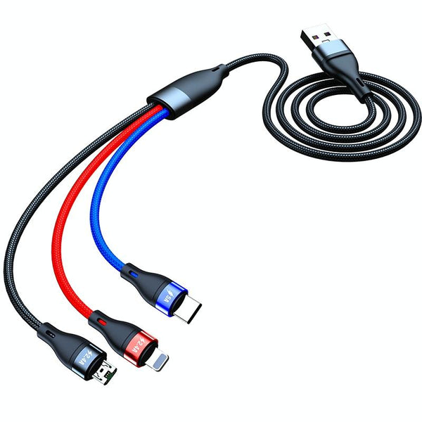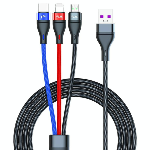40W 5A USB to Micro USB + USB-C / Type-C + 8 Pin Fast Charging Data Cable, Cable Length: 1.2m